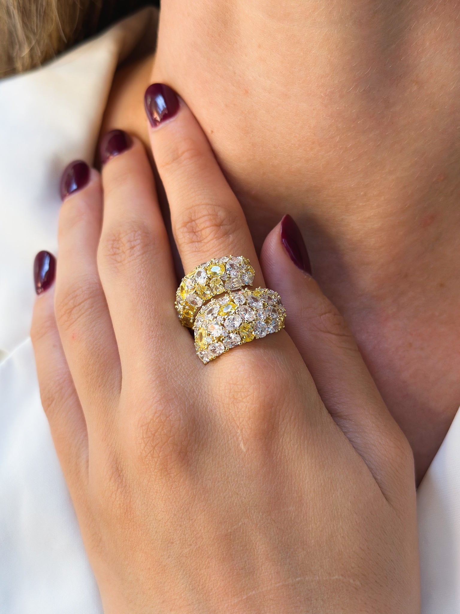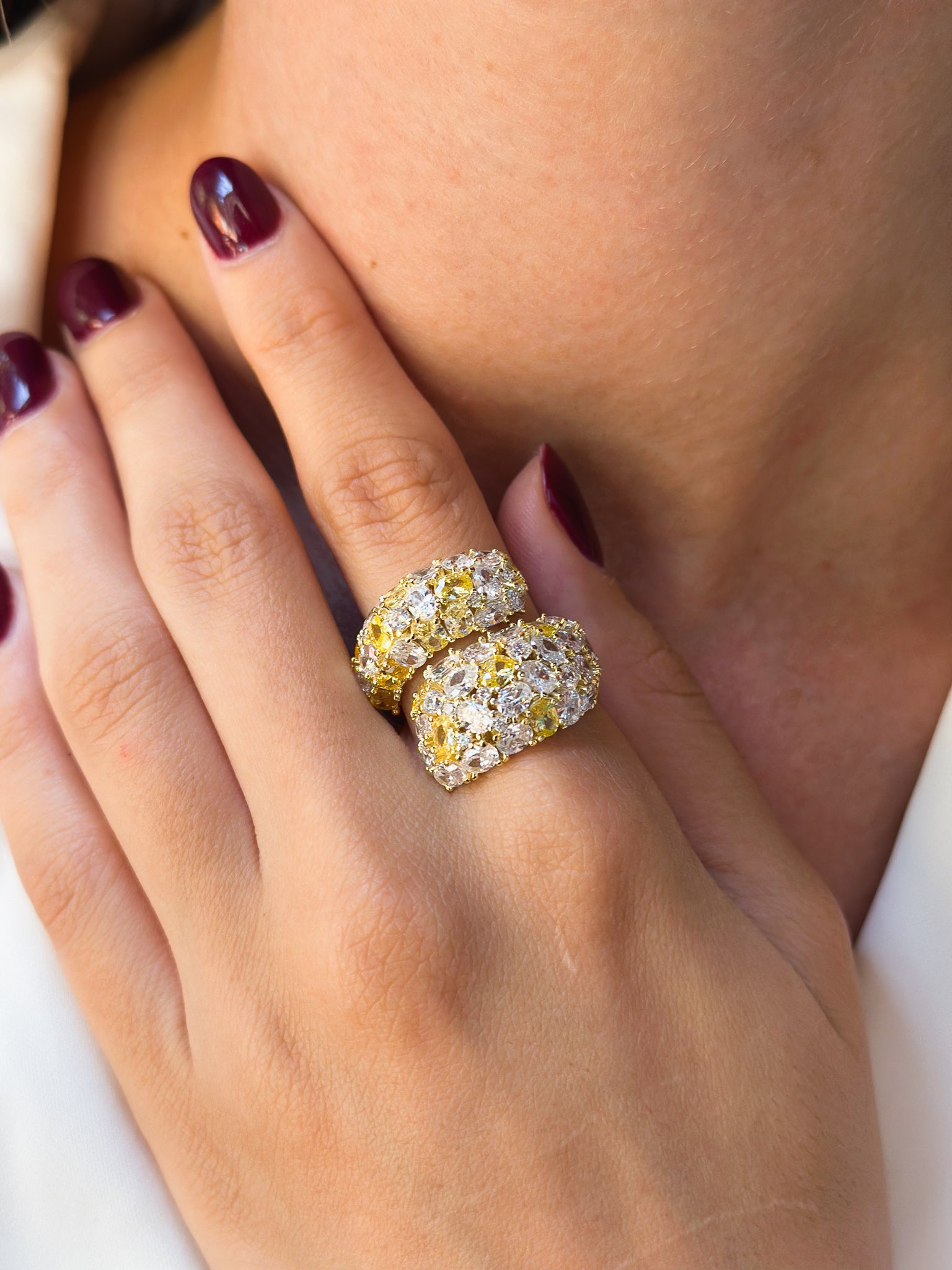 Scopri l’eleganza senza tempo di questo anello in argento 925 rodiato, impreziosito da una raffinata incastonatura di zirconi dai toni del bianco e del giallo, ispirati alla lucentezza del diamante classico e al fascino ricercato del diamante Fancy.