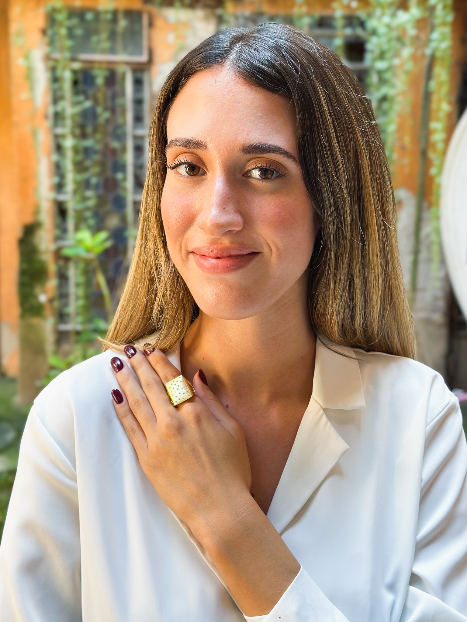 Un gioiello che unisce raffinatezza e carattere, realizzato in argento 925 placcato oro giallo 18kt e valorizzato da una superficie satinata che conferisce un’eleganza opaca e sofisticata.