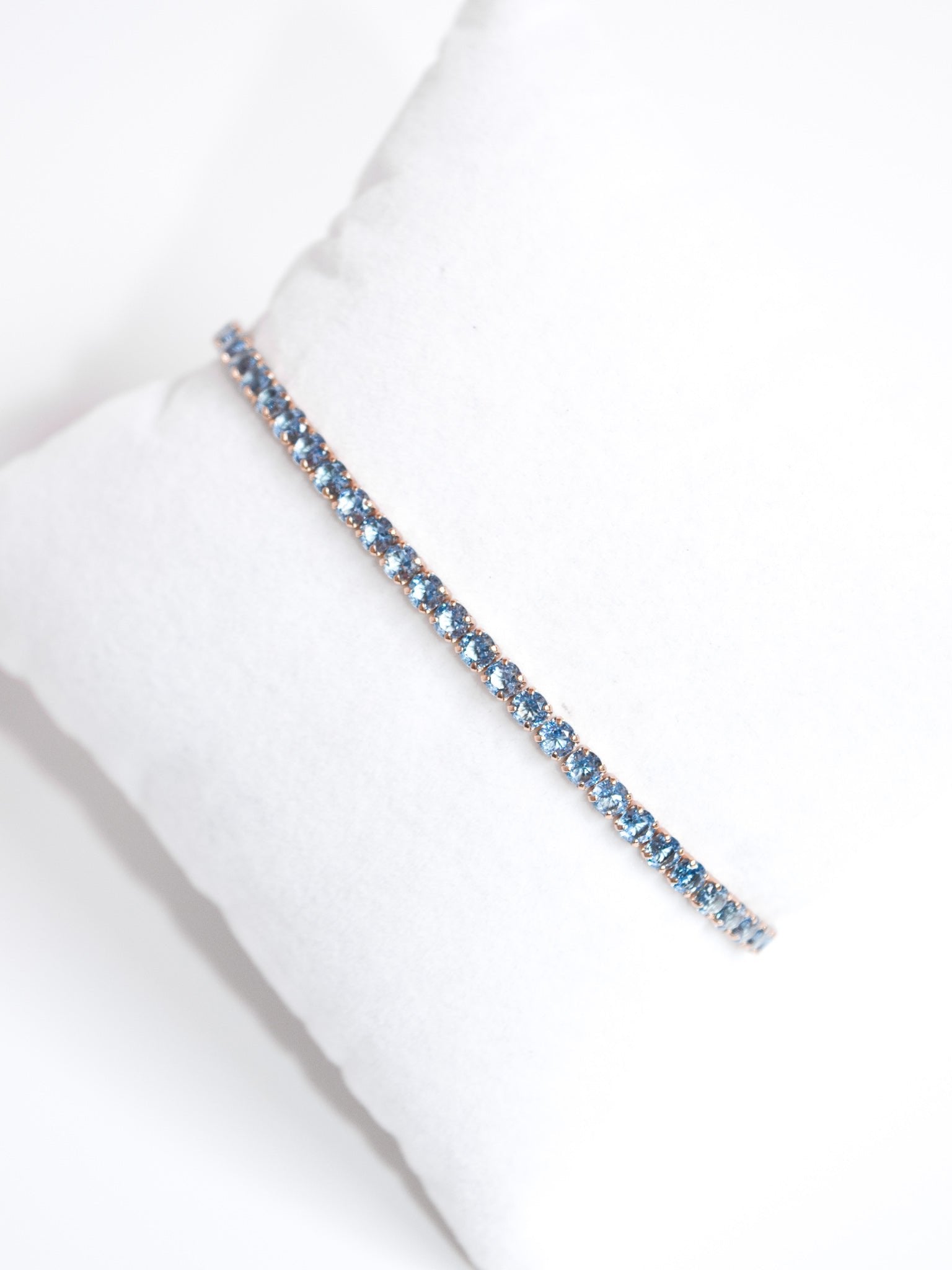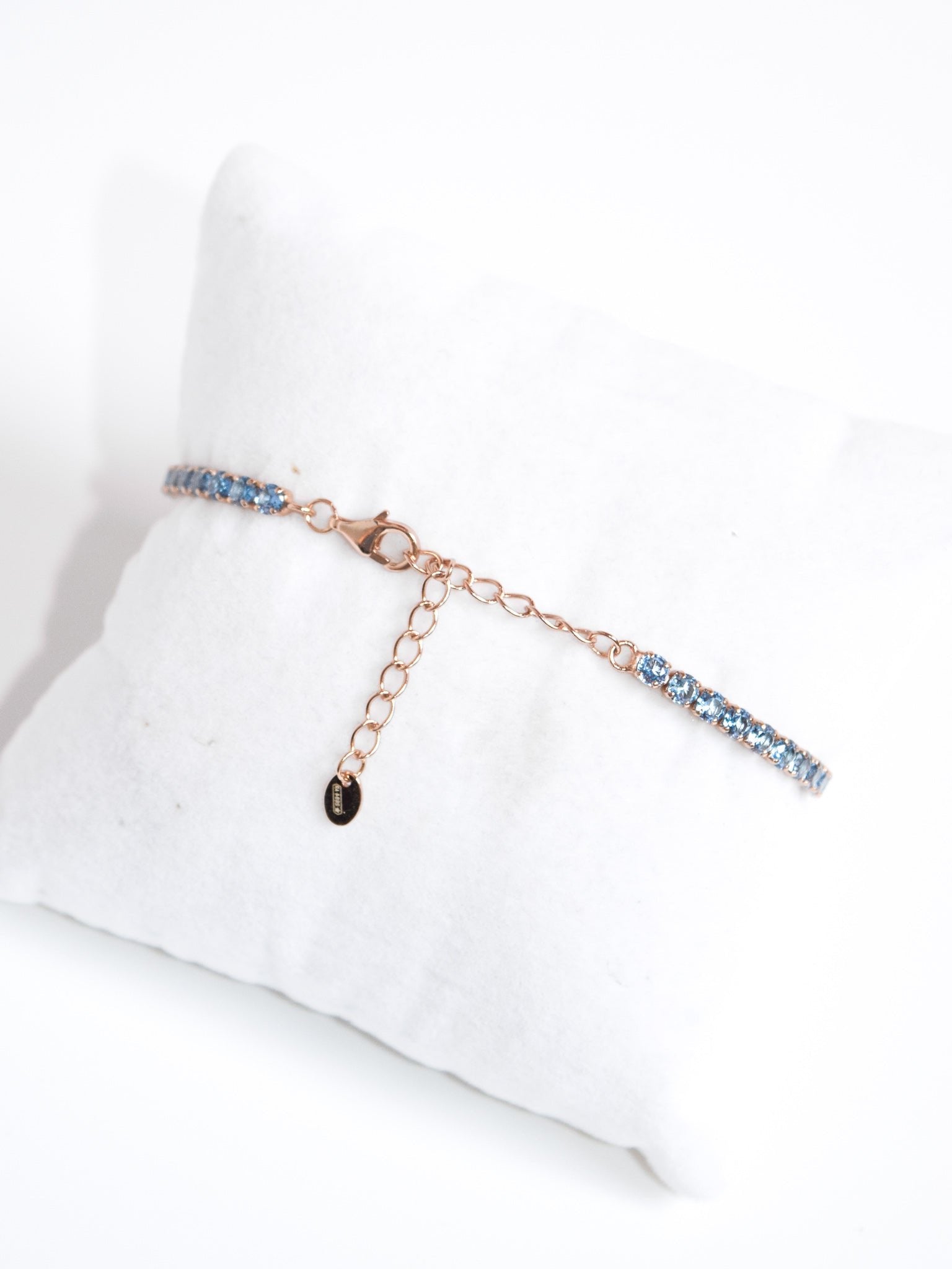 Bracciale Tennis in Argento 925 placcato oro rosa 18kt con zirconi azzurri