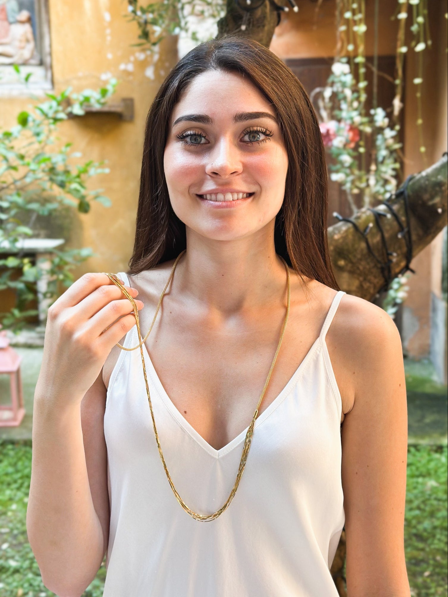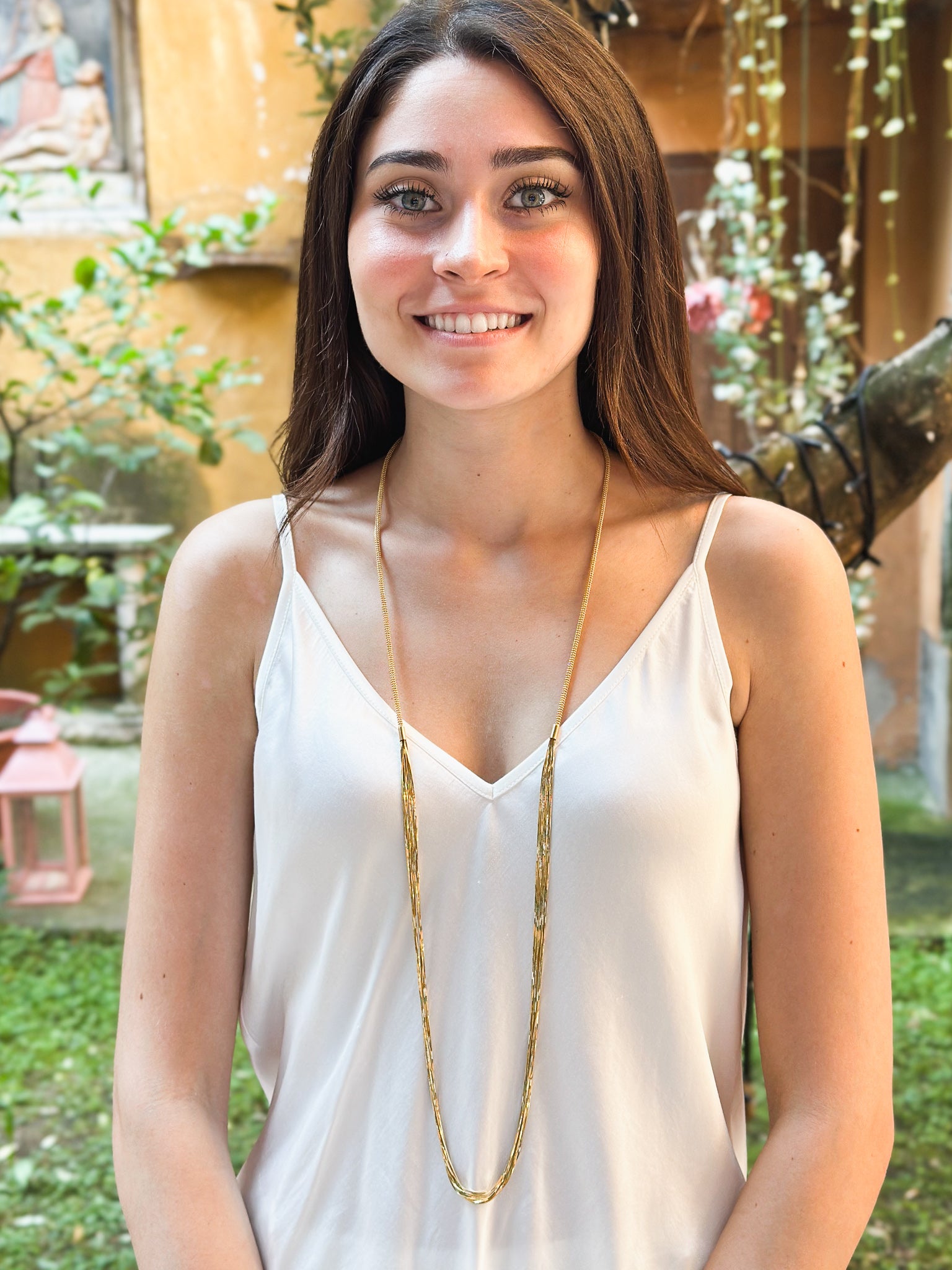 Collana lunga in argento placcato oro giallo 18kt a più fili
