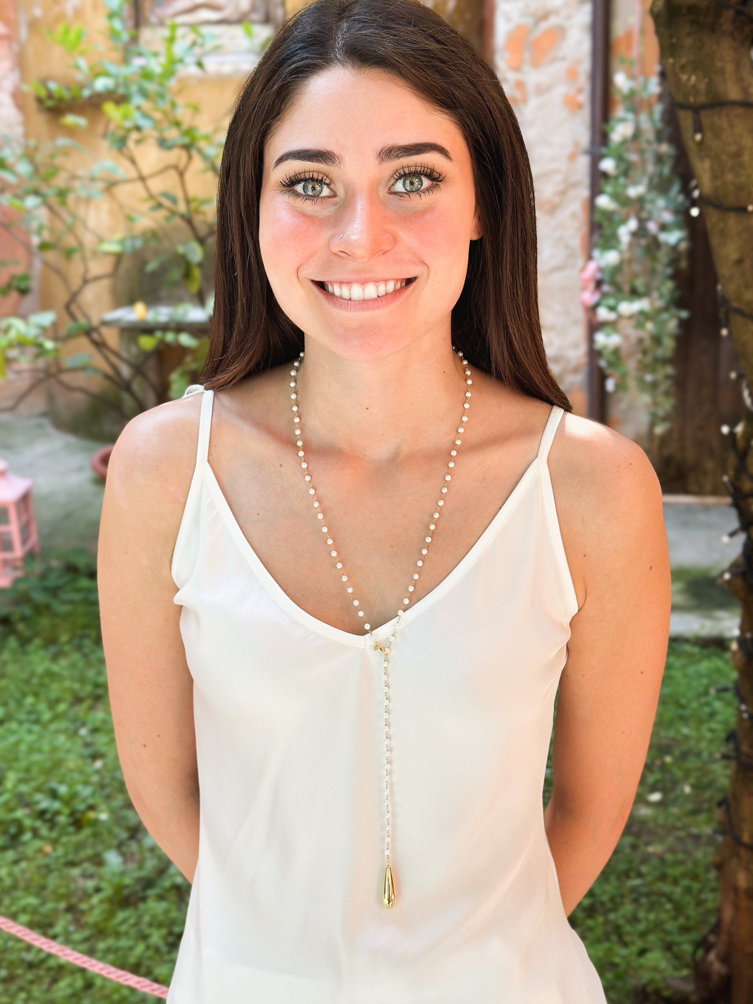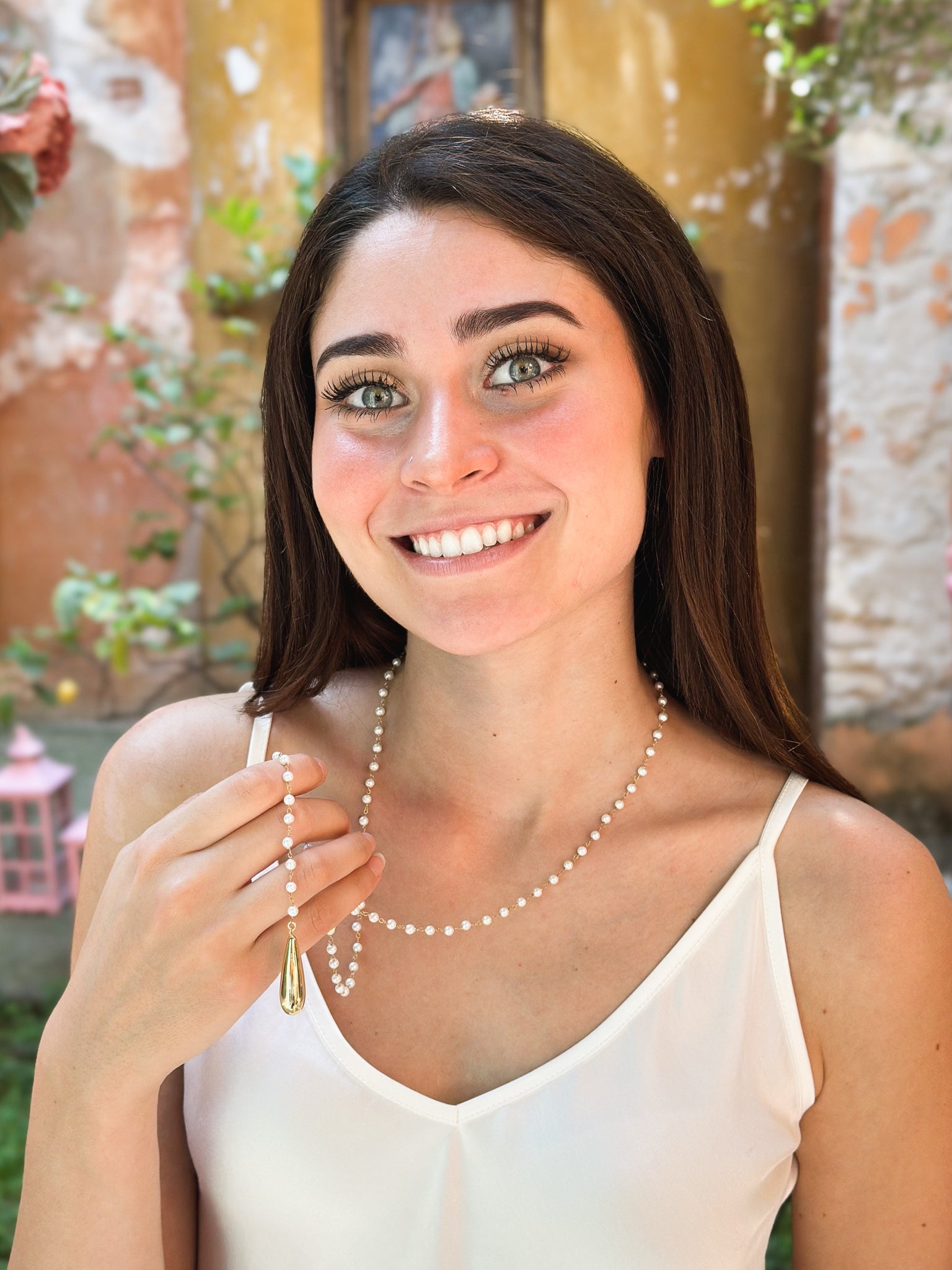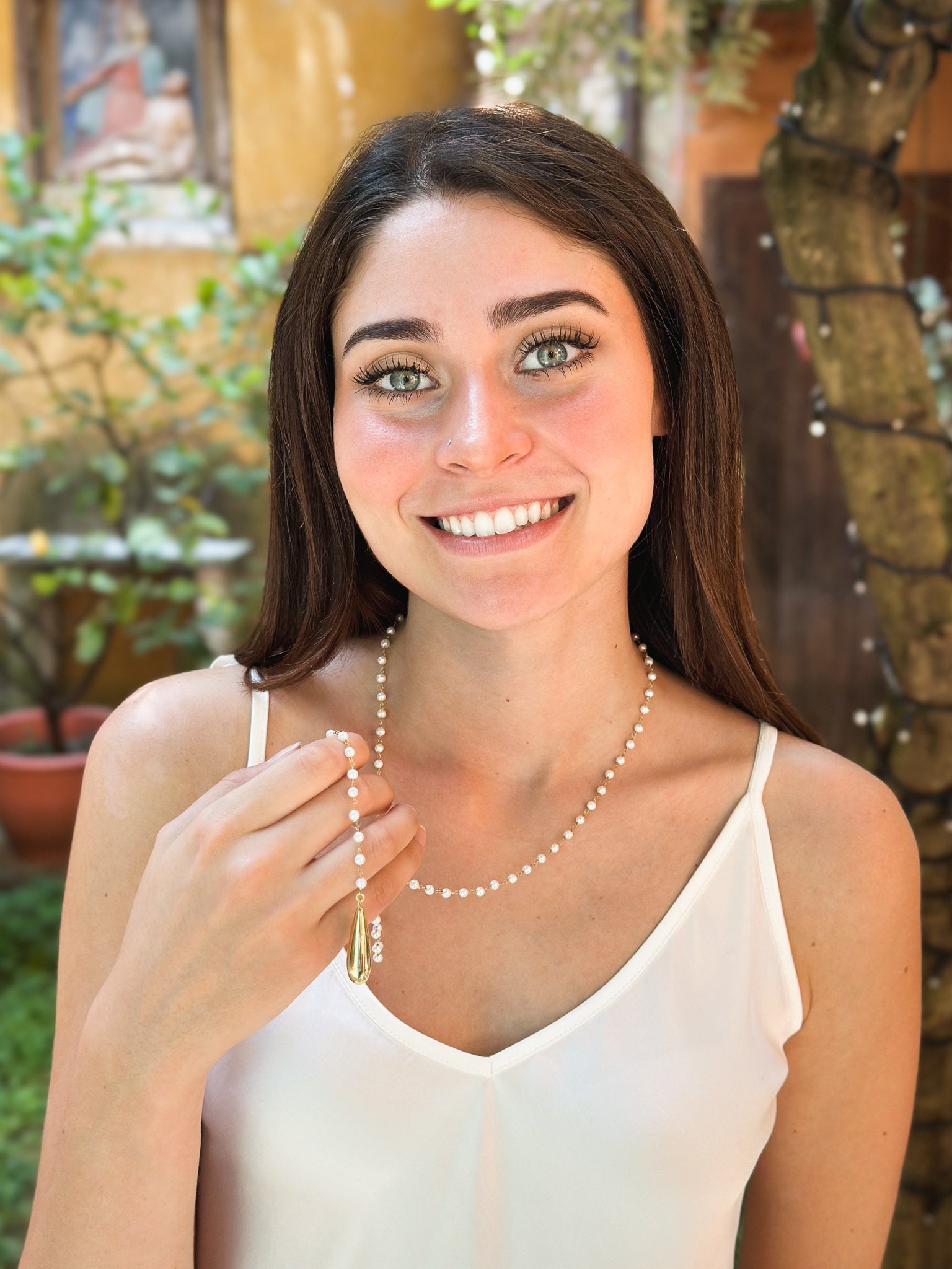 Collana lunga in argento 925 placcato oro giallo 18kt con perle e pendente a goccia