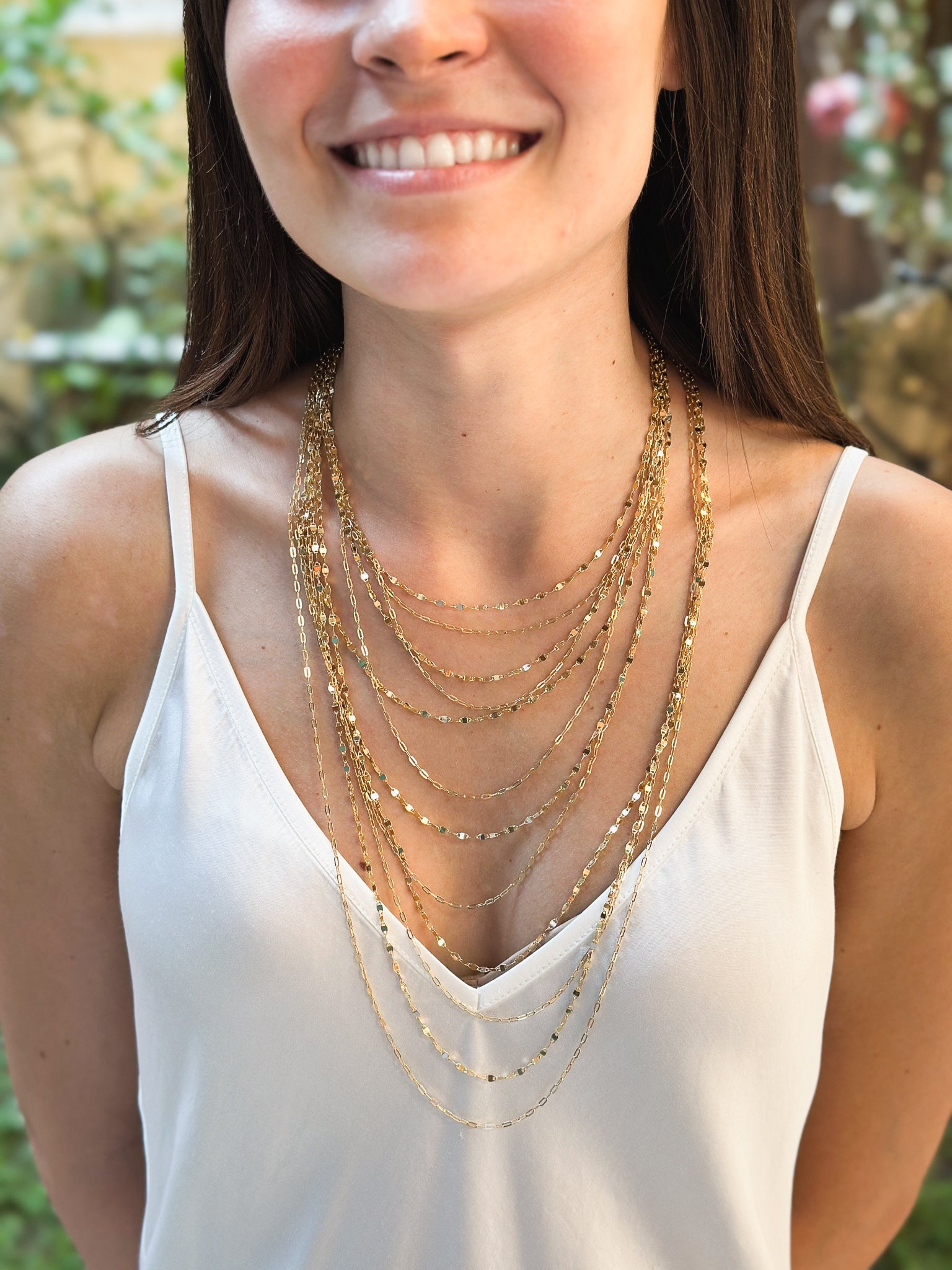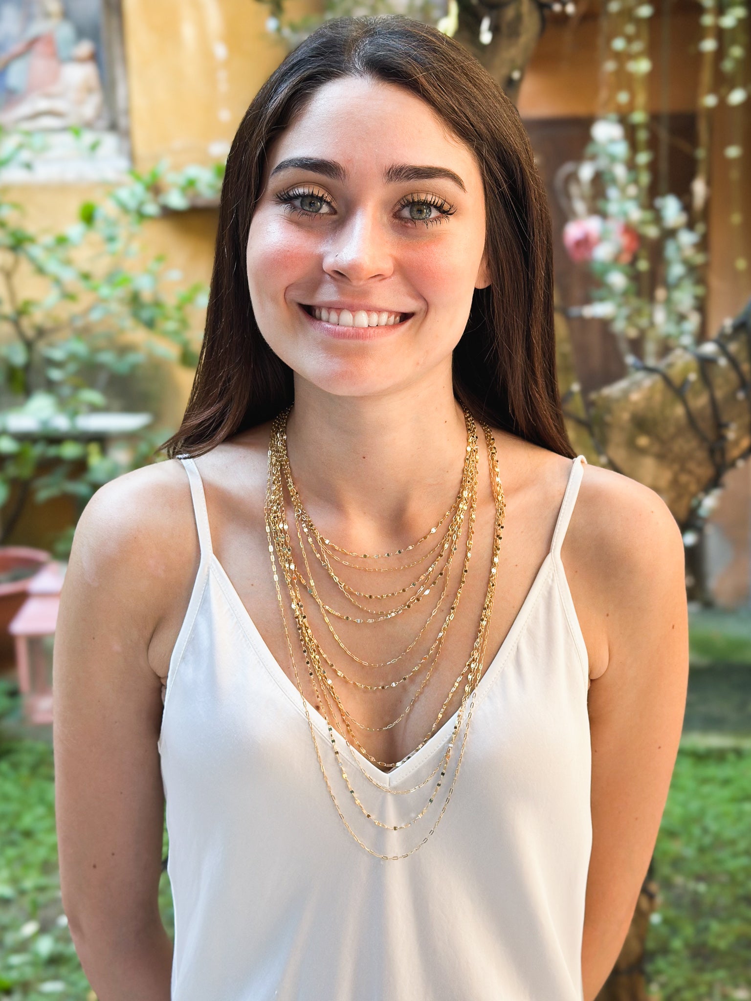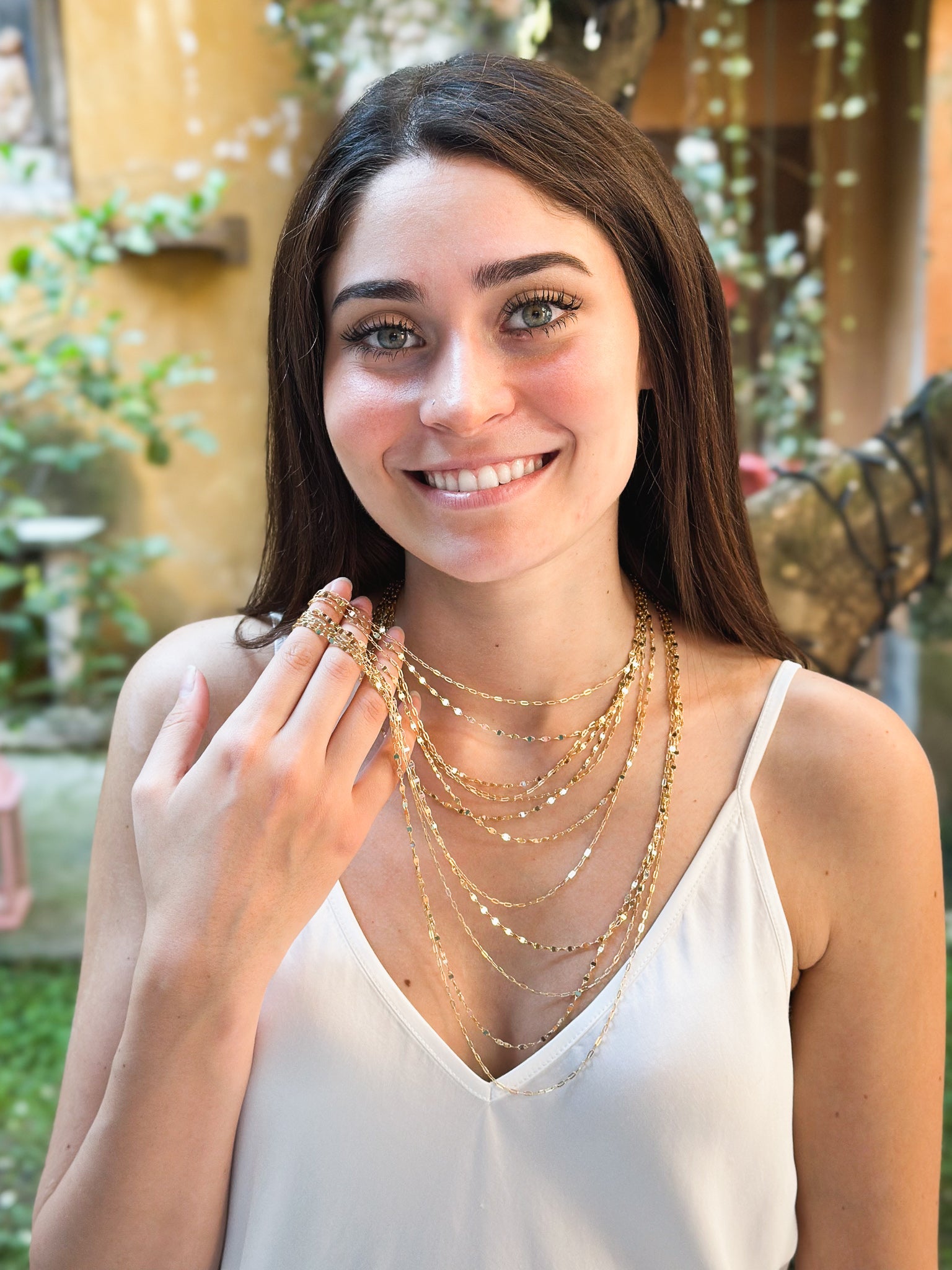 Collana lunga in argento placcato oro giallo 18kt a più fili