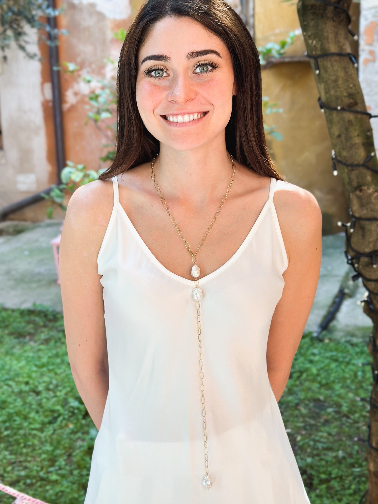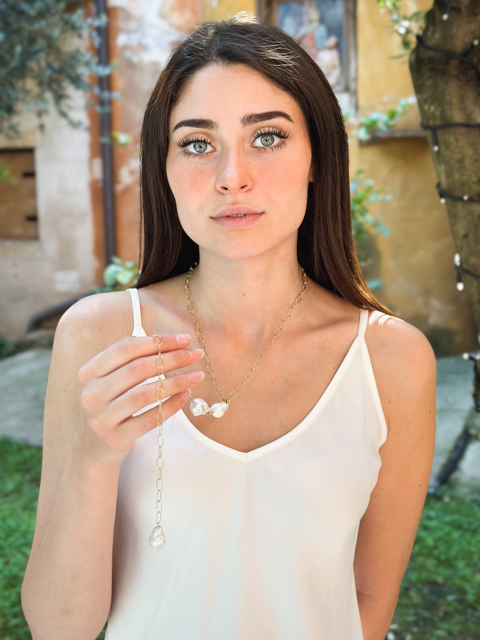 Collana lunga in argento 925 placcato oro giallo 18kt con perle barocche