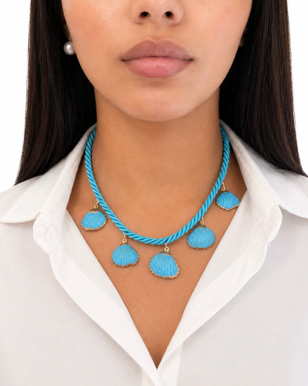 Girocollo con Torsone azzurro e Conchiglie