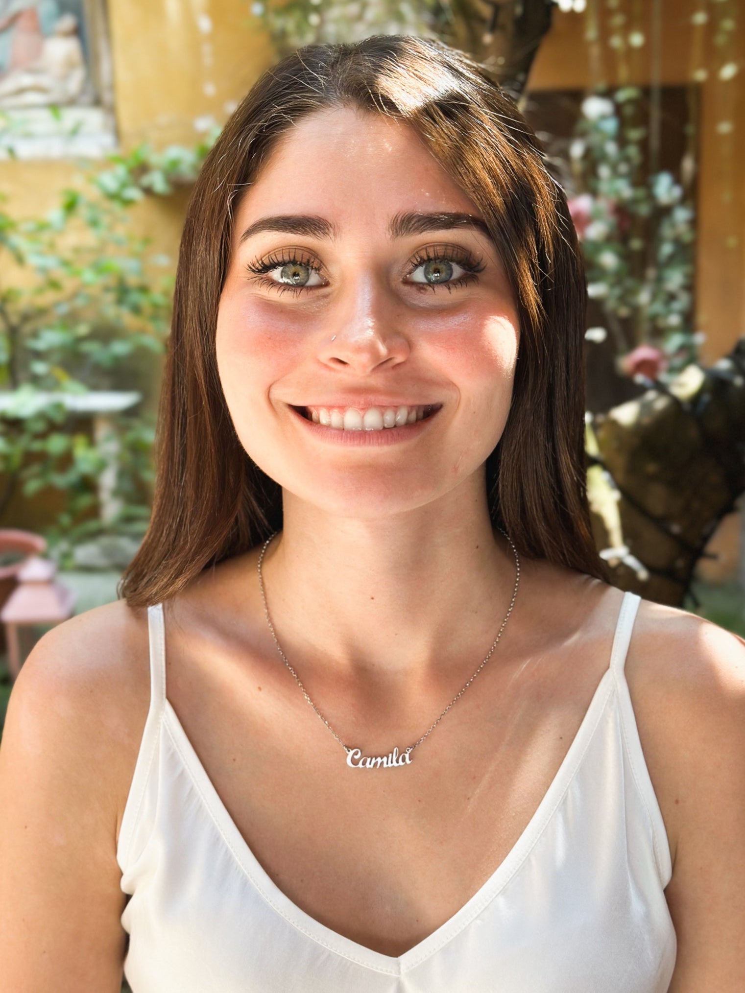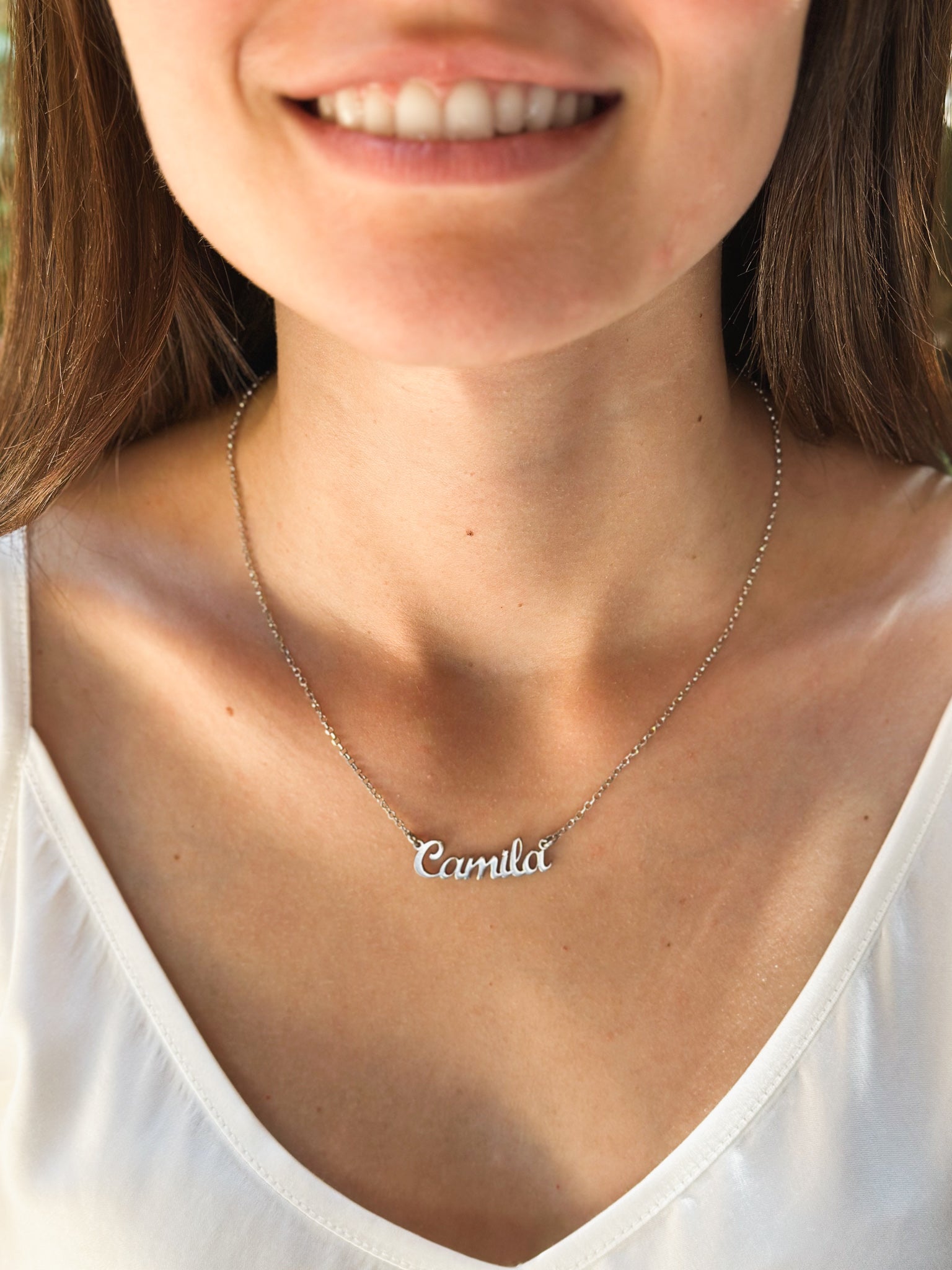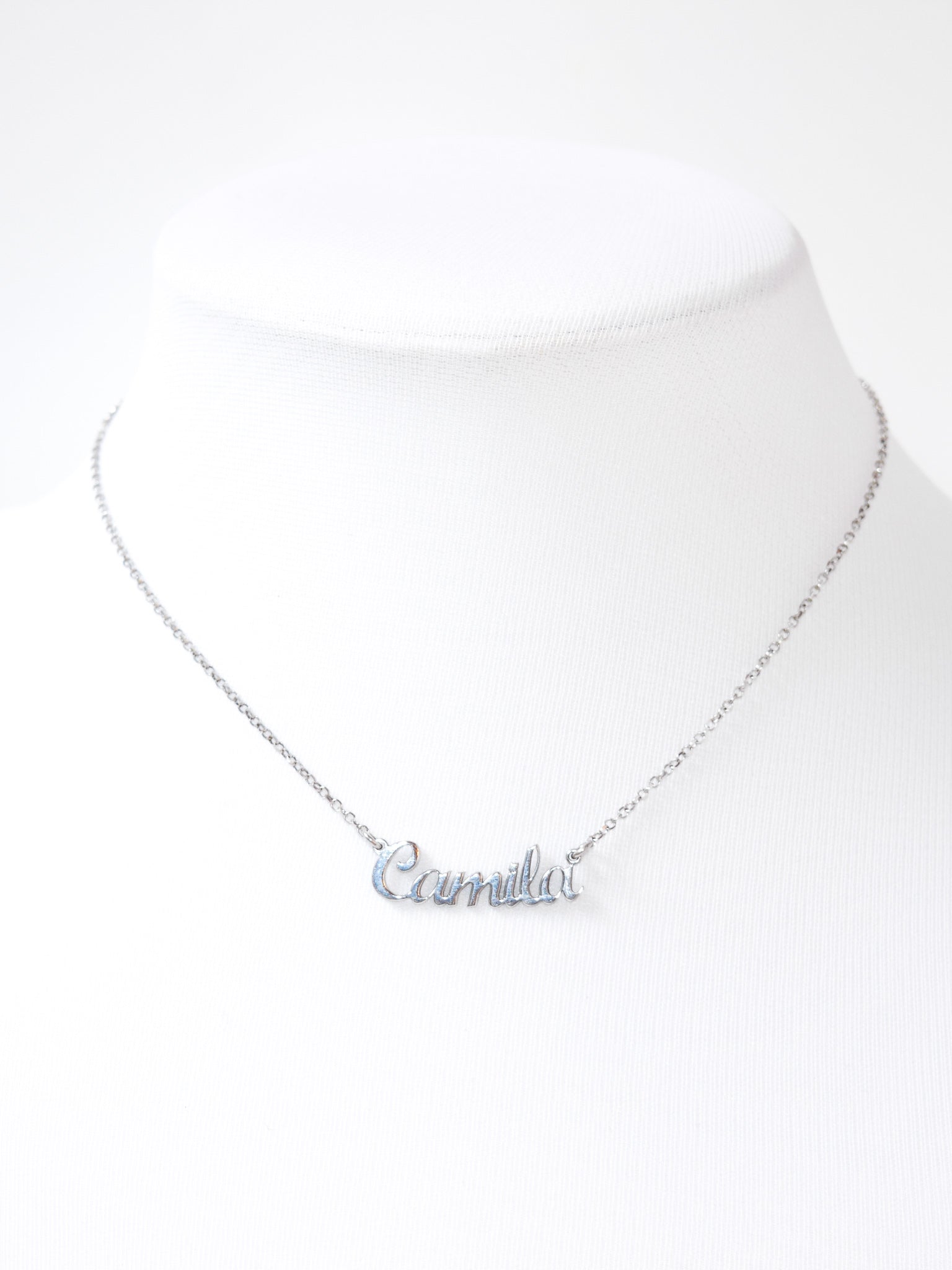 Delicato girocollo in argento 925 rodio con nome personalizzabile.