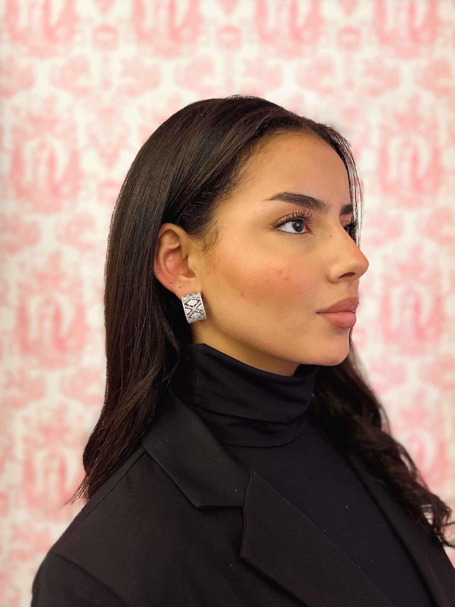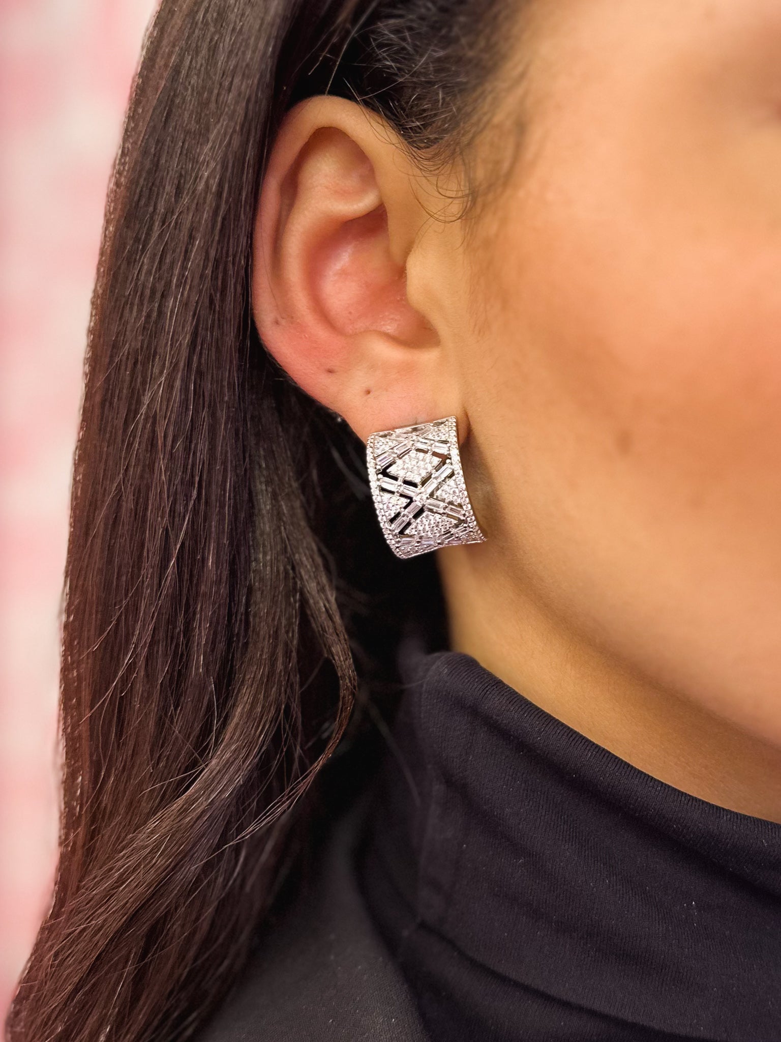 Raffinati e brillanti, questi orecchini in argento 925 rodiato sono impreziositi da zirconi luminosi che si intrecciano in una composizione unica e scintillante.