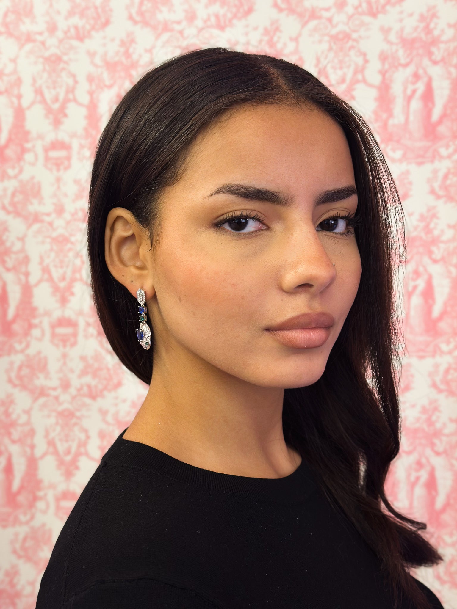 Brillanti e sofisticati, questi orecchini in Argento 925 rodiato uniscono la luce degli zirconi bianchi a una cornice elegante che valorizza gli zirconi colorati nei toni del blu e del verde.