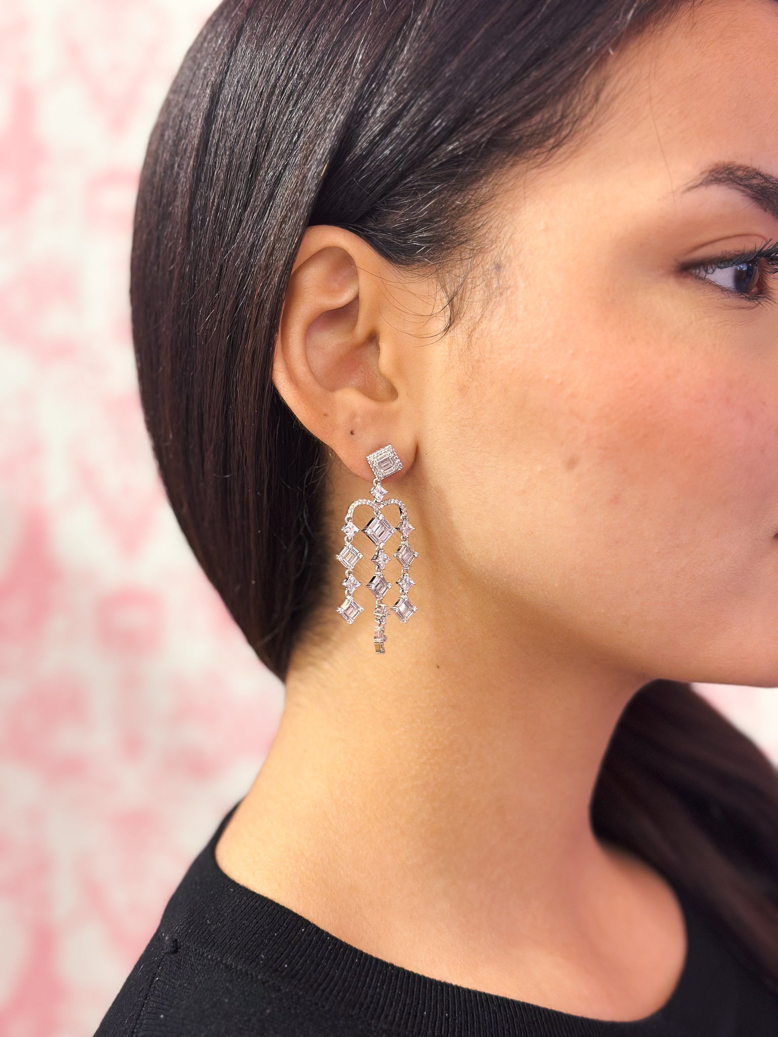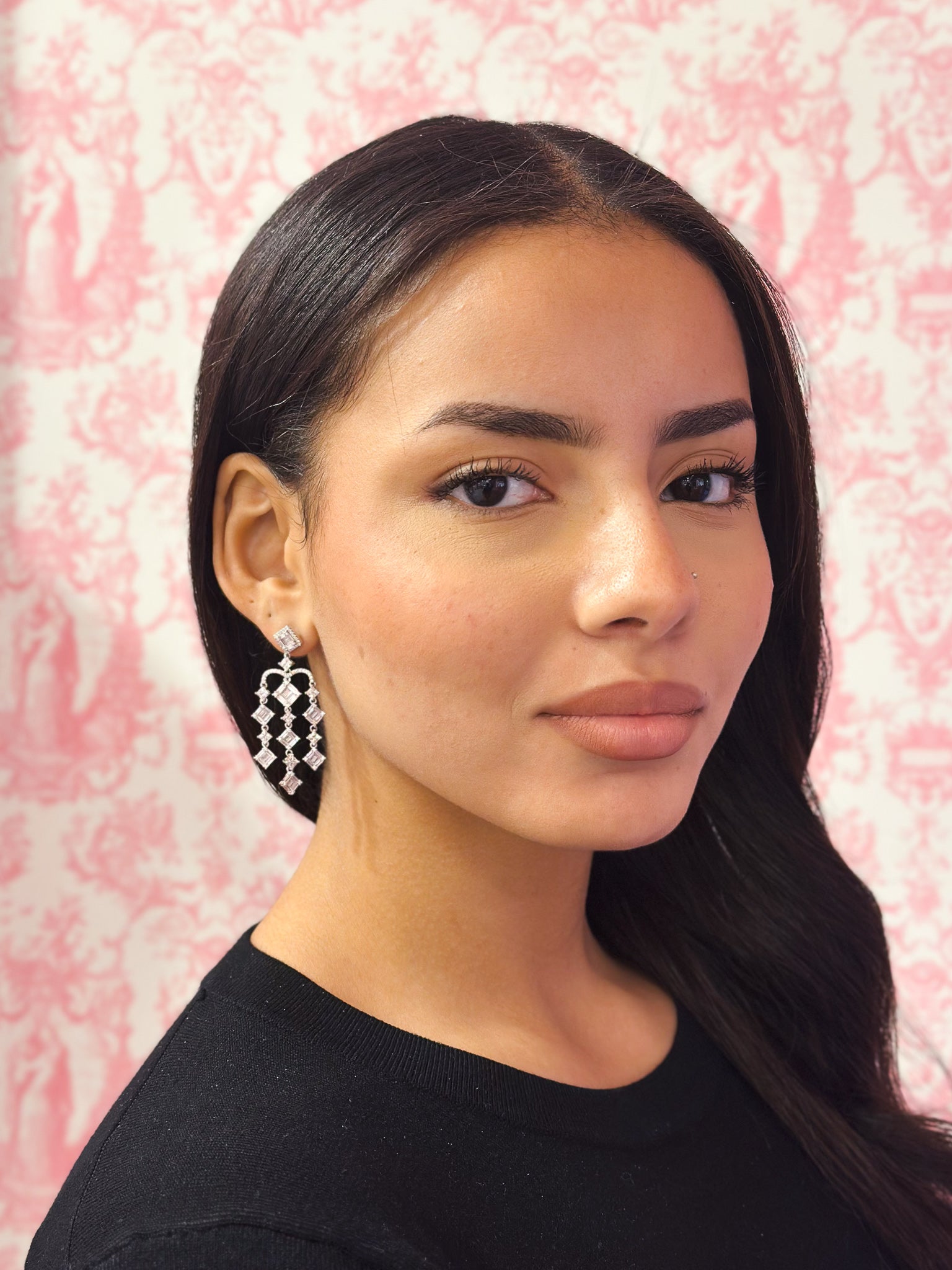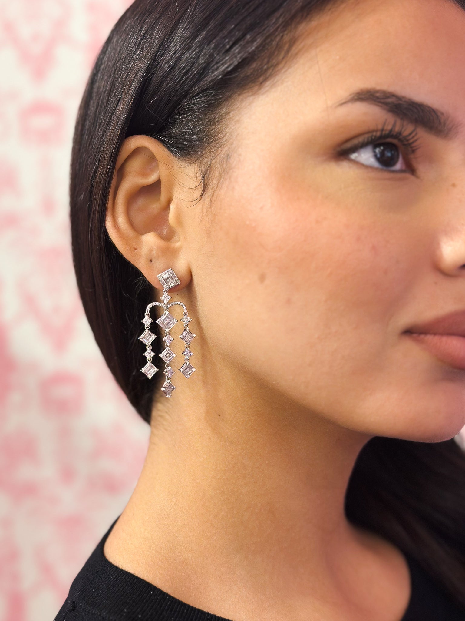 Lasciati conquistare dal fascino sofisticato degli orecchini in argento 925 rodiato, impreziositi da una cascata di luminosi zirconi taglio rombo.