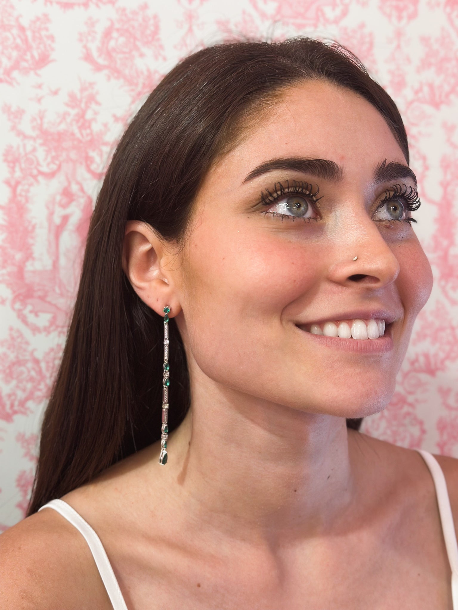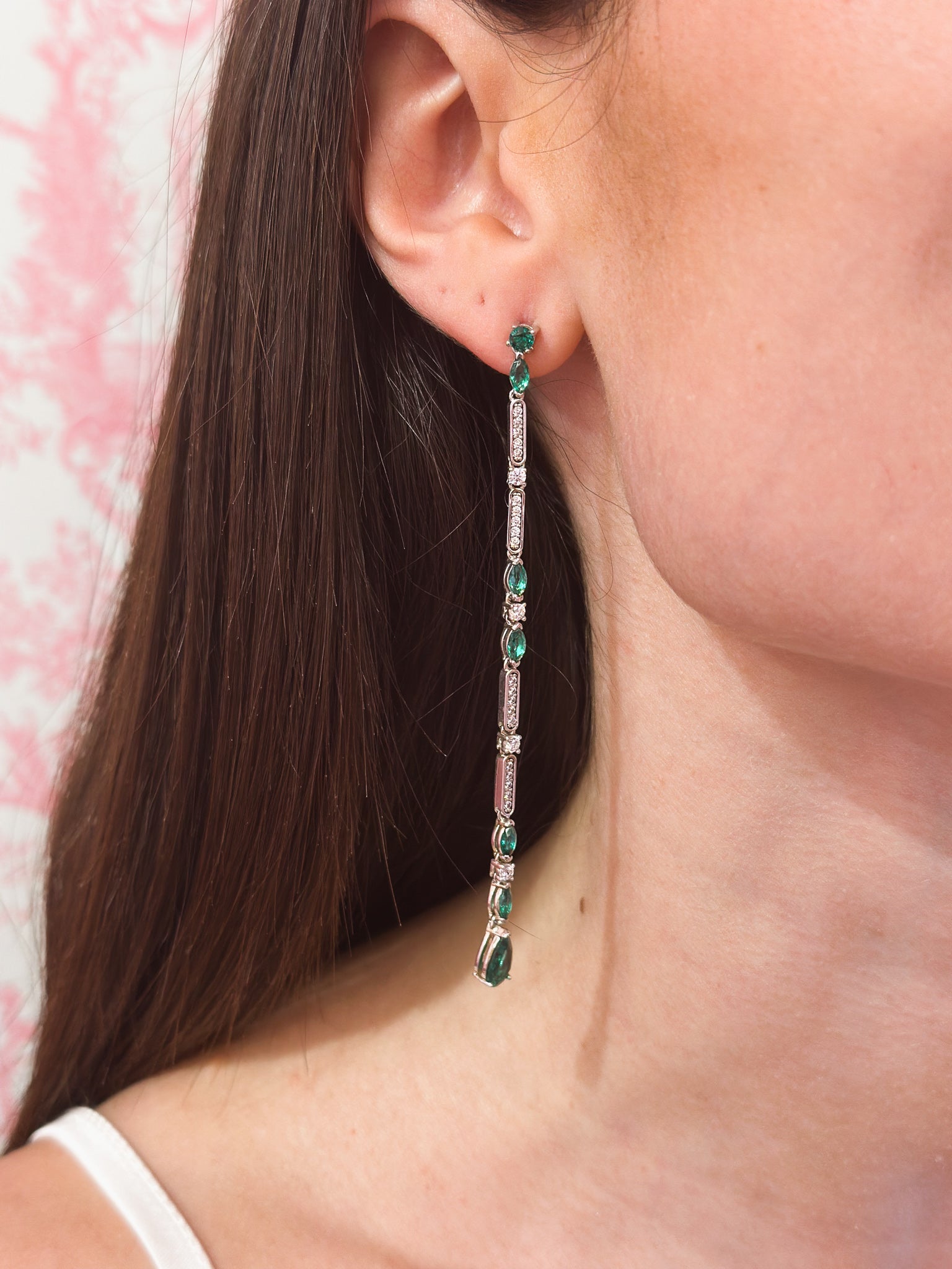Gli orecchini Donatella sono realizzati in argento 925 rodiato ed impreziositi da zirconi verdi, che conferiscono un tocco di luminosità ed eleganza all'intera creazione.