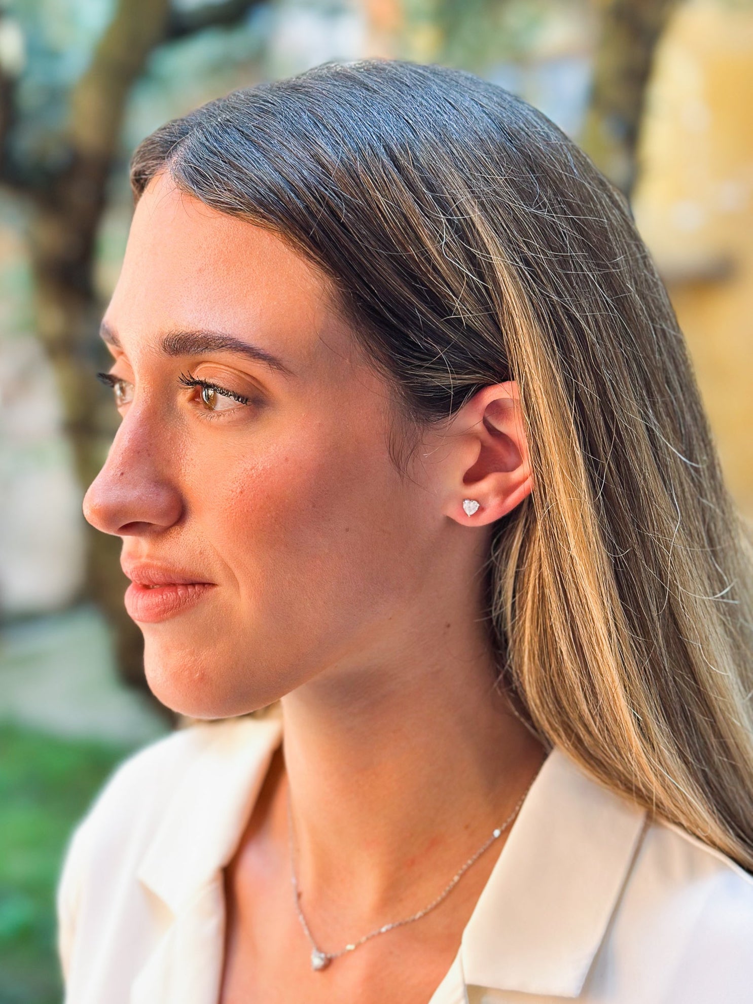Illumina ogni momento con questi splendidi orecchini punto luce in Argento 925 rodiato, impreziositi da brillanti pietre di Moissanite taglio cuore.