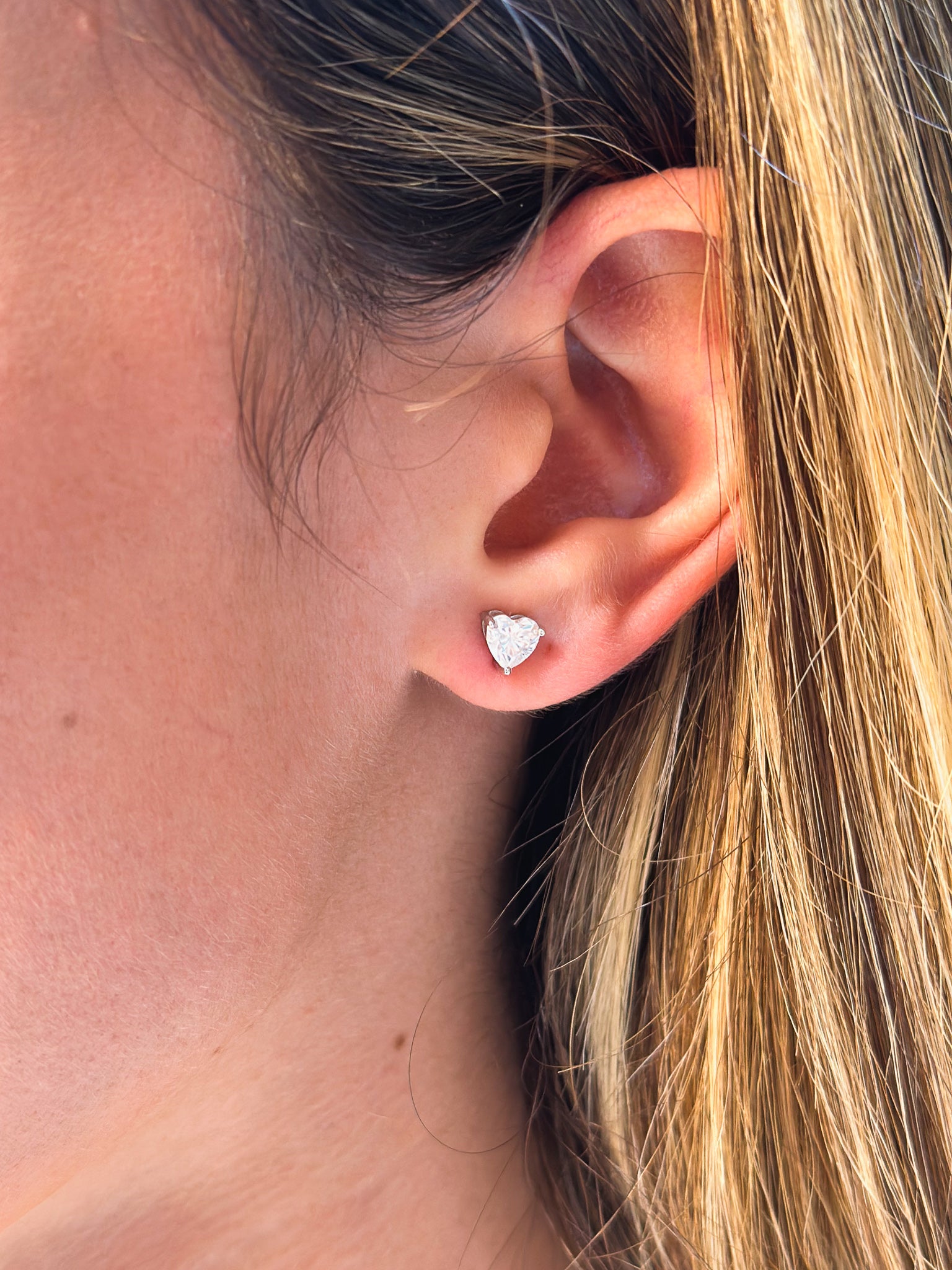 Orecchini punto luce in Argento 925 con Moissanite taglio Cuore ct 0,5