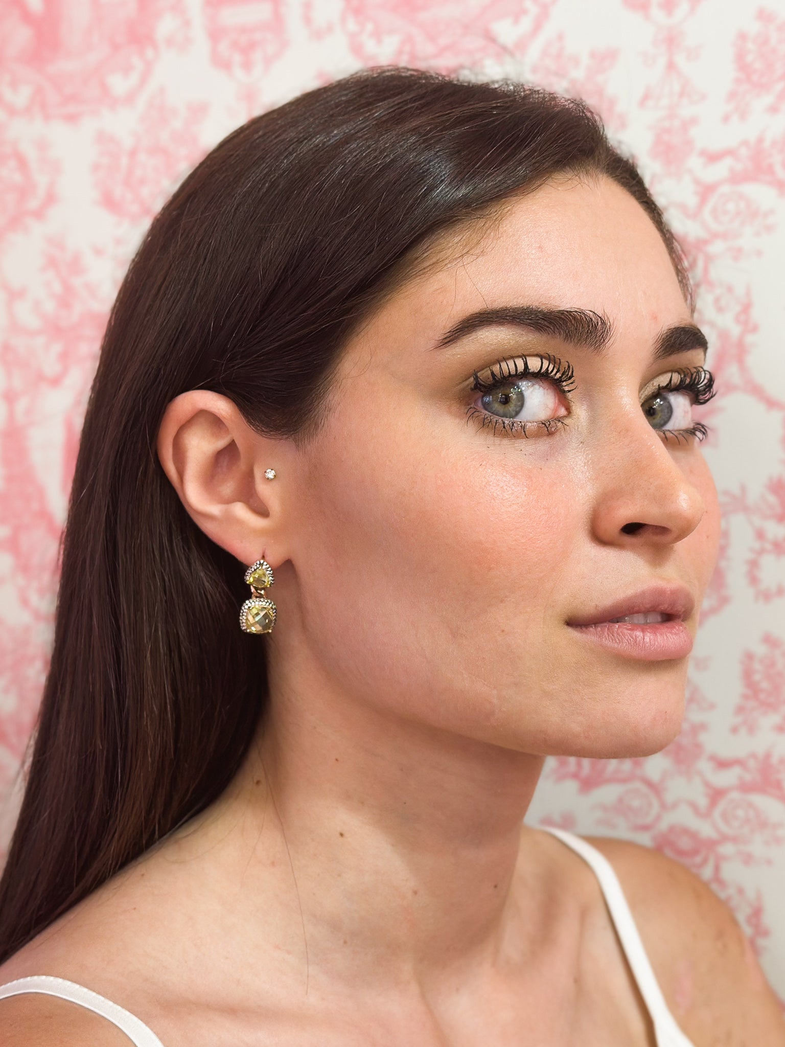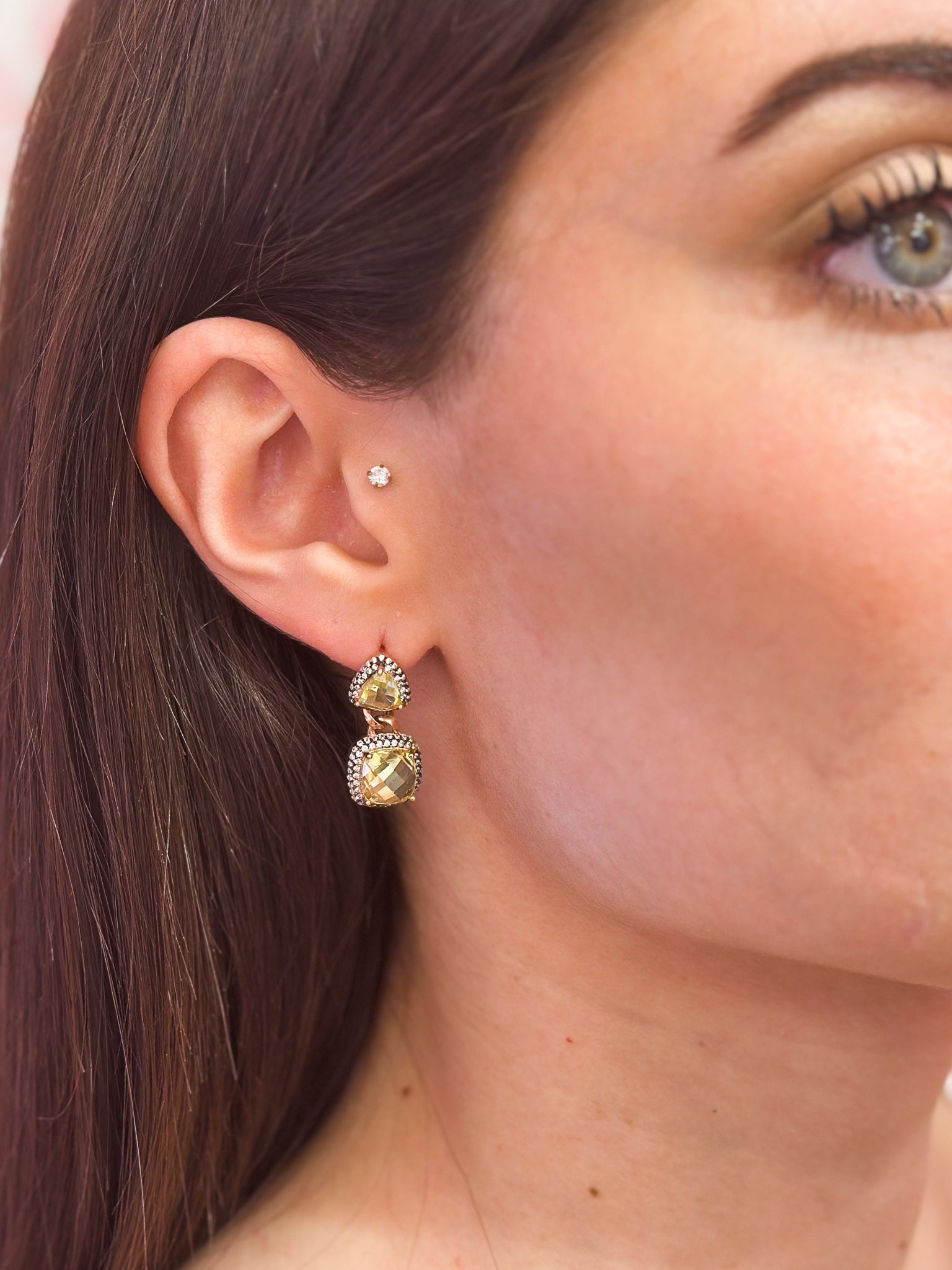 L'orecchino Lime è realizzato in argento 925 placcato oro rosa 18kt con zirconi incastonati, protagonisti della composizione sono i due color lime.