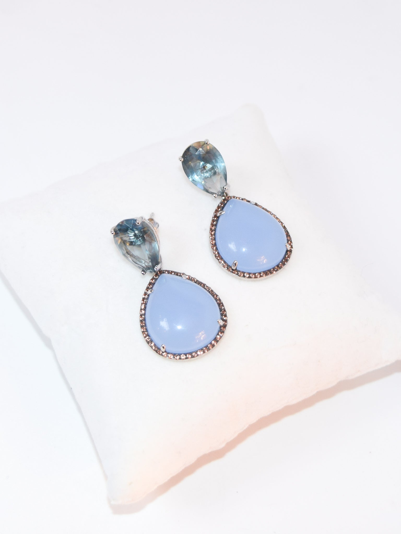 Orecchini in Argento 925 con Calcedonio e luminosi zirconi