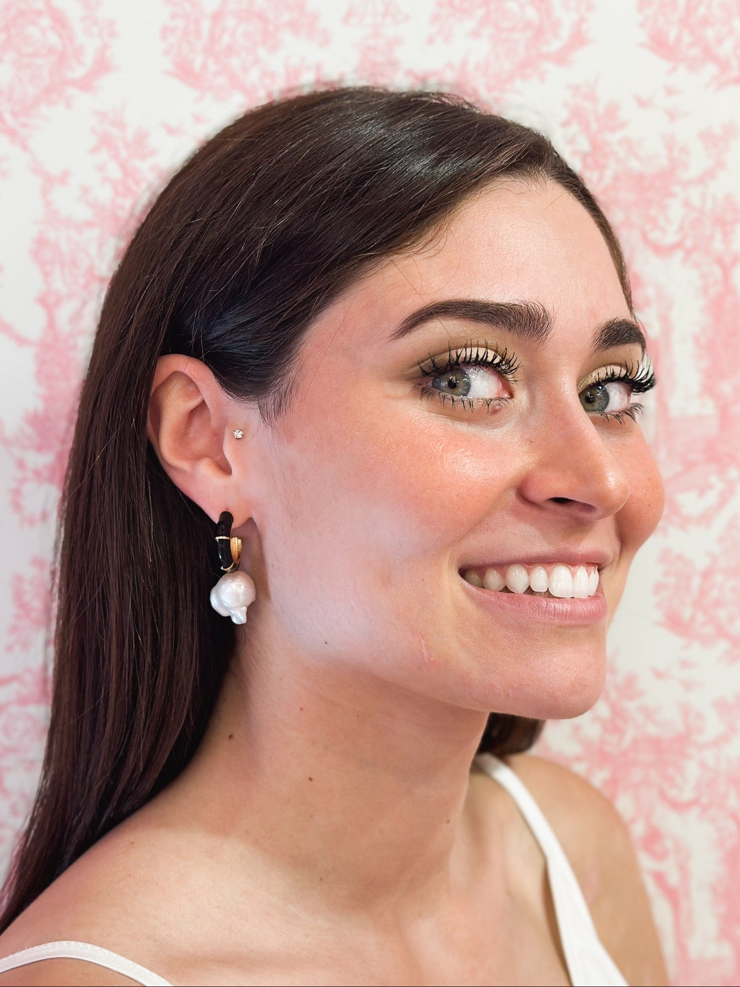 L'orecchino Marta è realizzato in argento 925 placcato oro giallo 18kt con smalto nero e perla Barocca, questa combinazione unica aggiunge carattere e audacia ai tuoi look.