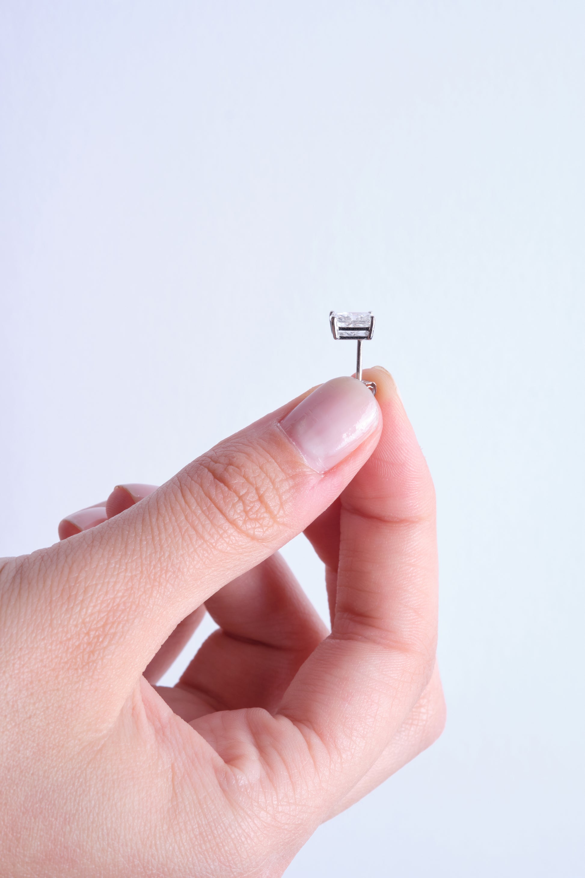 Eleganza ed innovazione si fondono in questo straordinario paio di orecchini in Oro Bianco 18kt, impreziosito da scintillanti Diamanti Lab Grown.