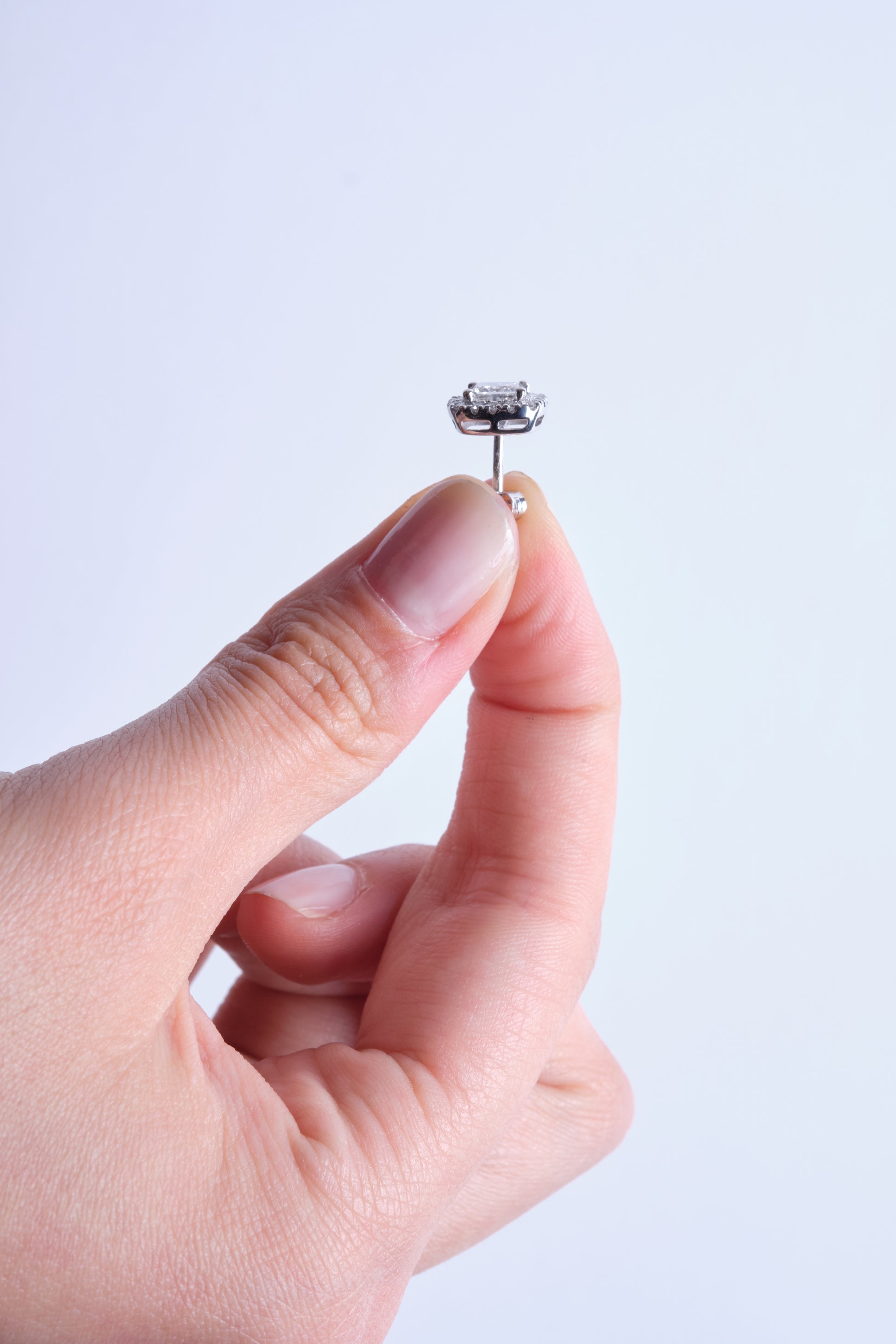 Eleganza ed innovazione si fondono in questo straordinario paio di orecchini in Oro Bianco 18kt, impreziosito da scintillanti Diamanti Lab Grown.
