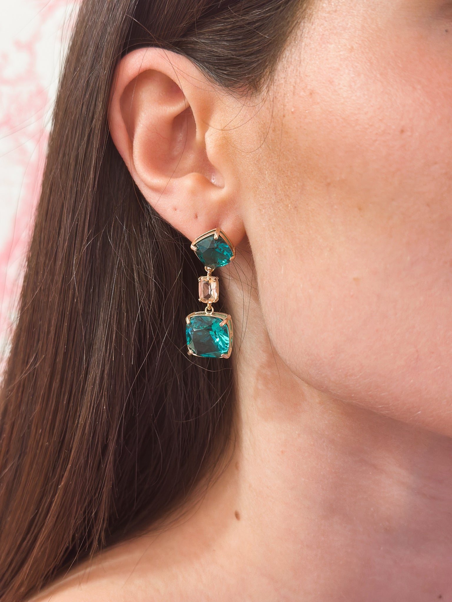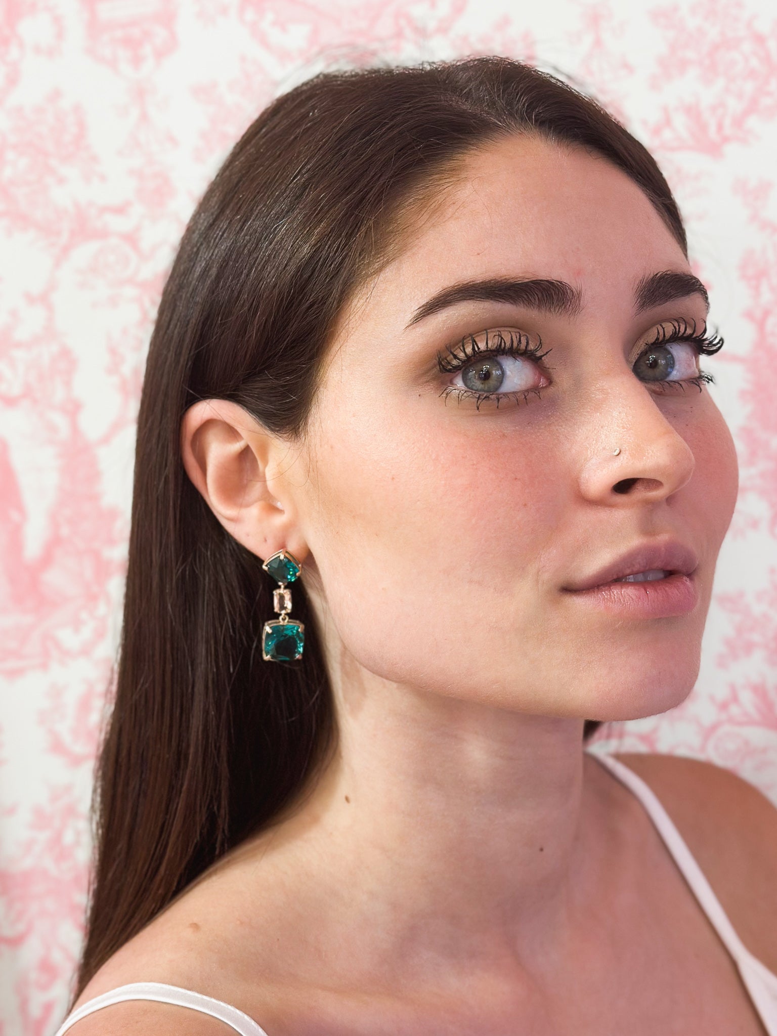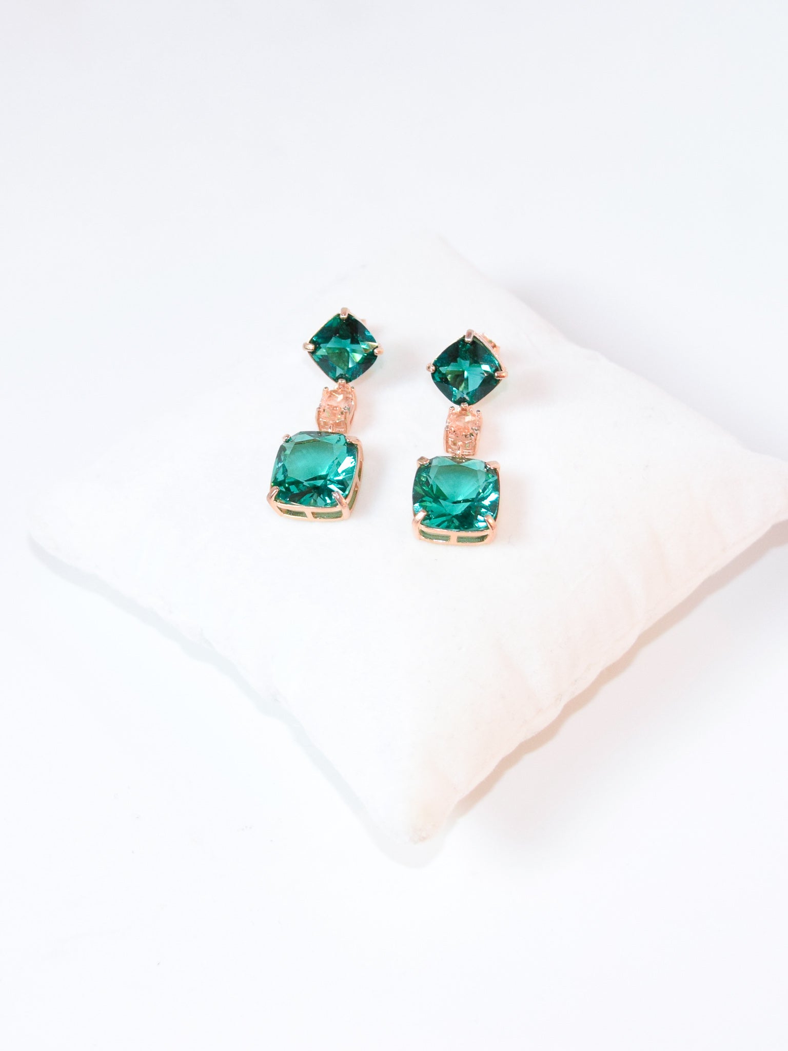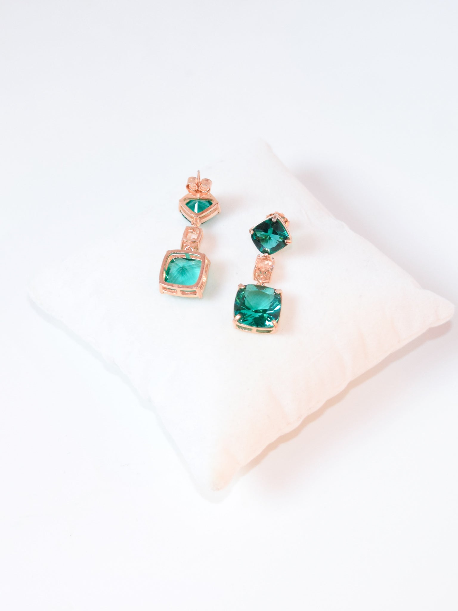 L'orecchino Verdiana è realizzato in argento 925 placcato oro rosa 18kt con zirconi colorati dai toni del verde e del nude a contrasto.